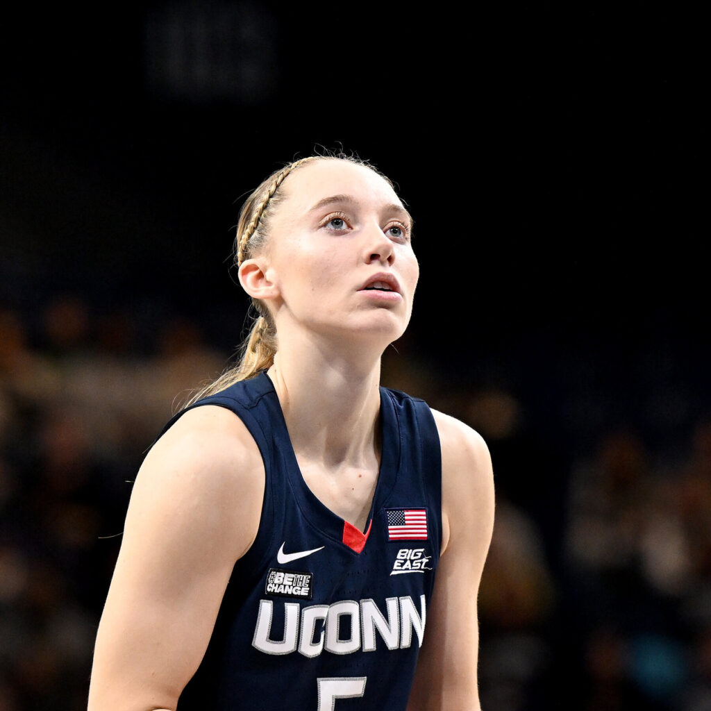 Angel Reese and Caitlin Clark Left. Enter Paige Bueckers and JuJu Watkins.