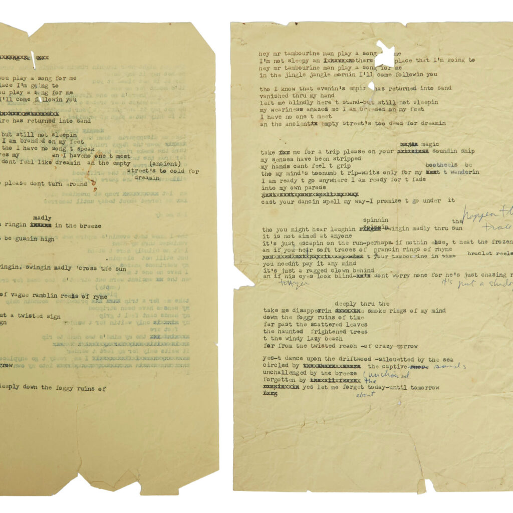 Two pages of lyrics, written in the kitchen of a pioneering rock ‘n’ roll journalist, offer glimpses into the Nobel Prize-winning musician’s writing process.
