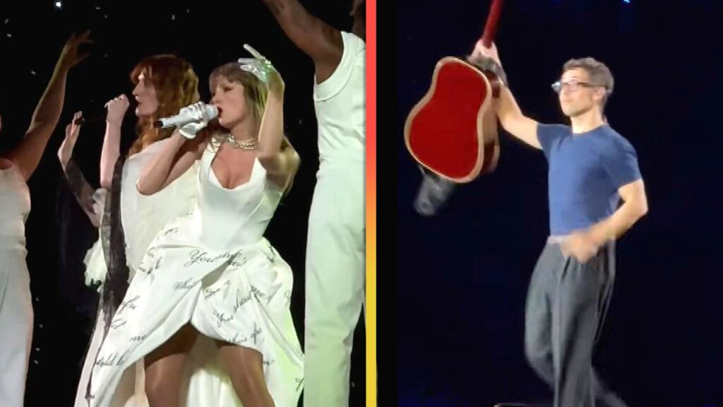 Taylor Swift surprises fans with special guest appearances from her pals, Florence Welch and Jack Antonoff, at her London Eras show.