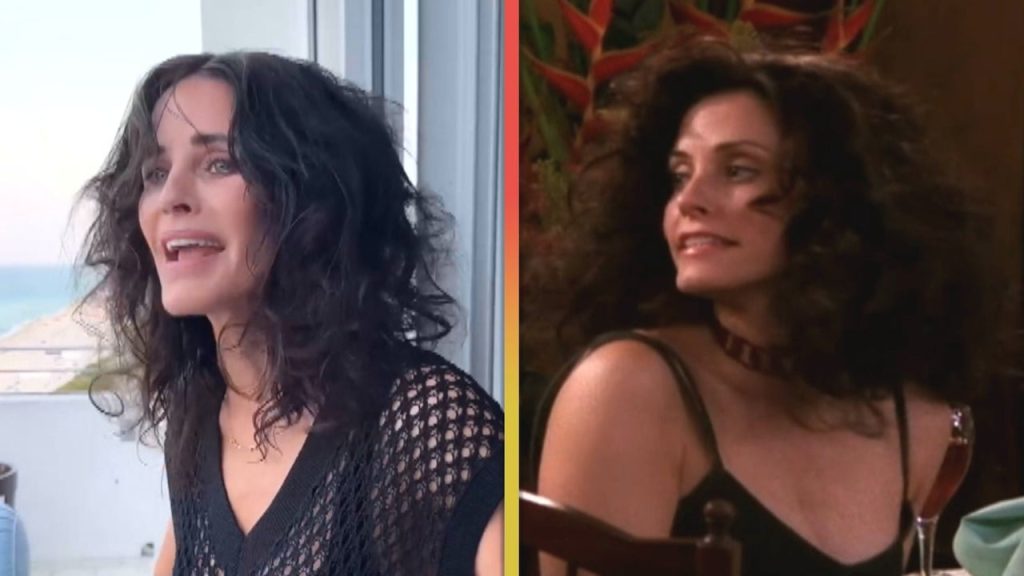 Courteney Cox recreates Monica’s frizzy hair scene from a classic season 9 episode of ‘Friends’ on Instagram.